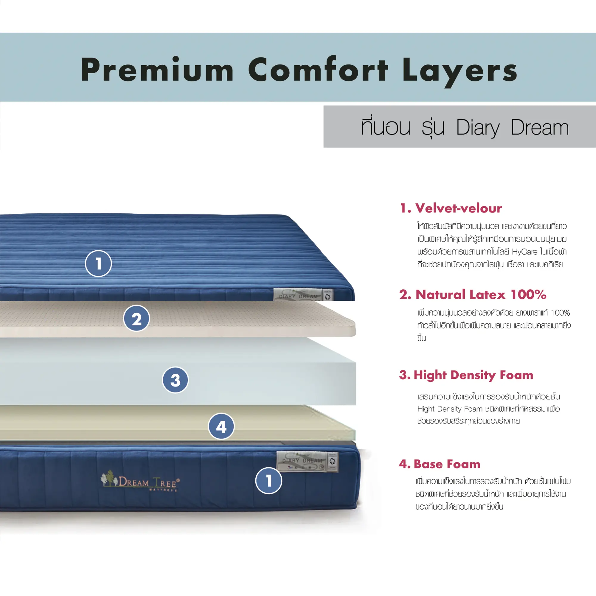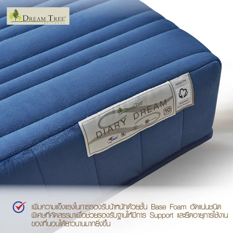 Dream Tree ที่นอนรุ่น Diary Dream หนา 9 นิ้ว ปกป้องคุณจากไรฝุ่น เชื้อรา และแบคทีเรียรับประกัน โครงสร้าง 10 ปี จัดส่งสินค้าฟรี (เฉพาะที่นอน ไม่รวมหัวเตียงและฐานรอง)