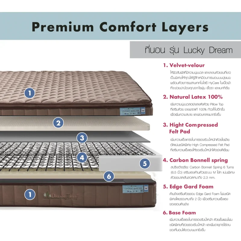 Dream Tree ที่นอนรุ่น Lucky Dream หนา 11 นิ้ว ส่งฟรี ปกป้องคุณจากไรฝุ่น เชื้อรา และแบคทีเรียรับประกันโครงสร้าง 10 ปี