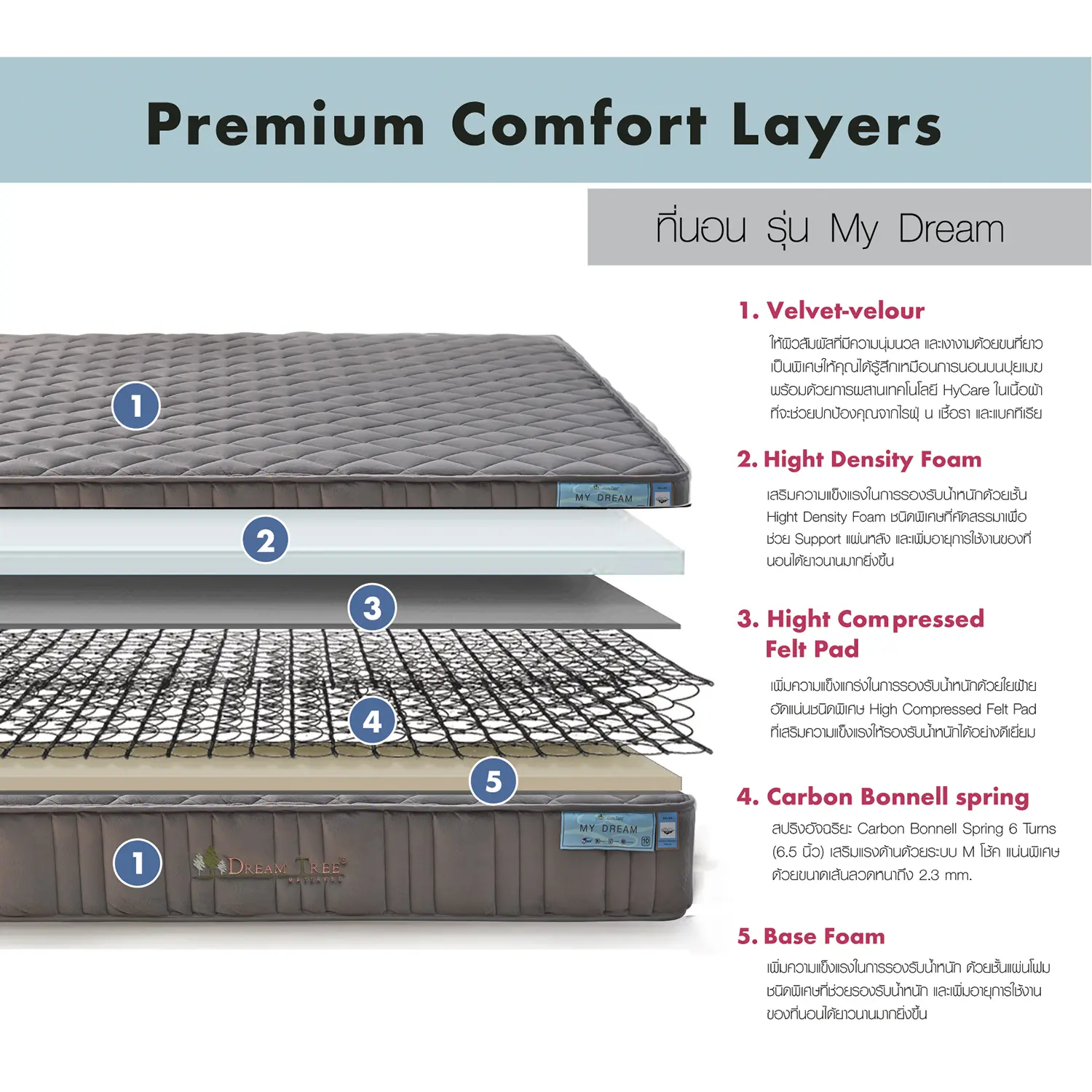 Dream Tree ที่นอนรุ่น My Dream หนา 10 นิ้ว แถมฟรีหมอนหนุน และส่งฟรี ปกป้องคุณจากไรฝุ่น เชื้อรา และแบคทีเรียรับประกันโครงสร้าง 10 ปี