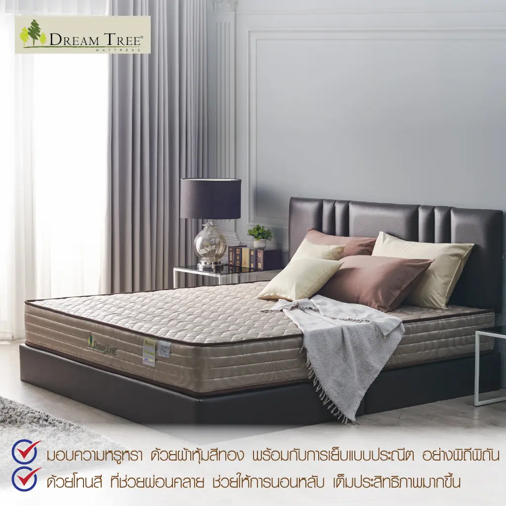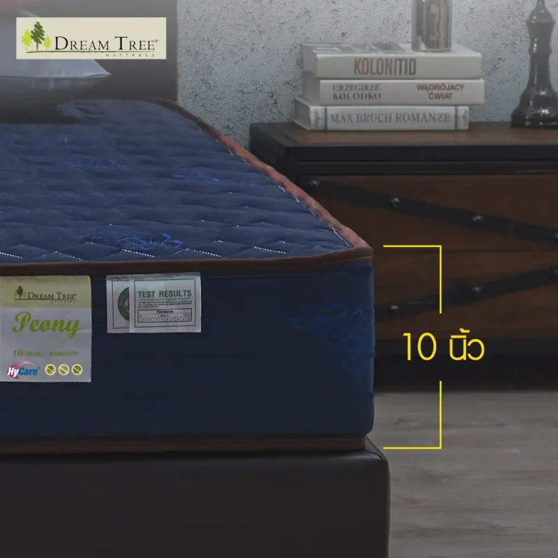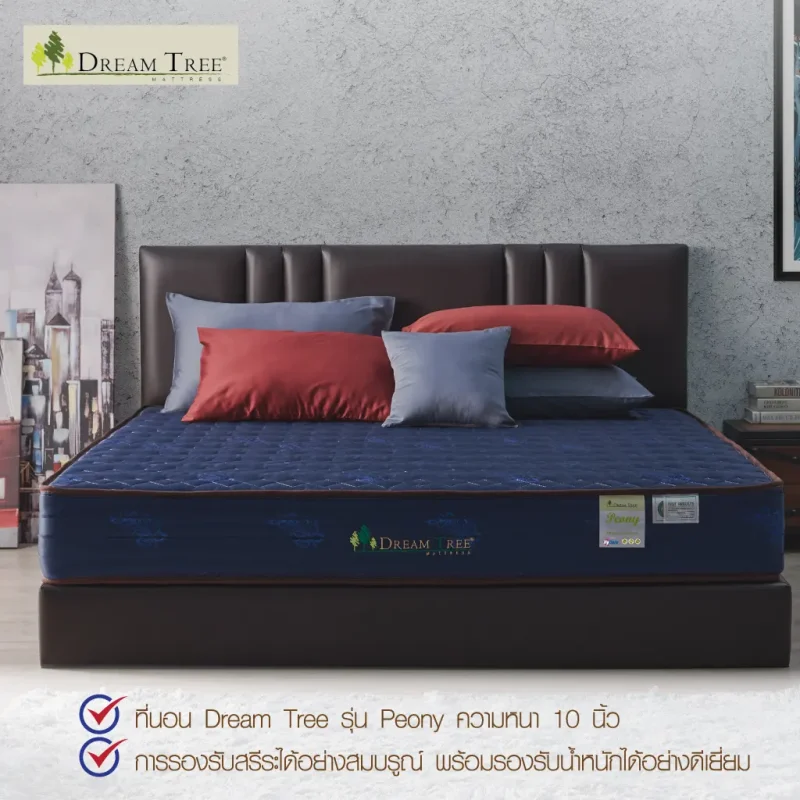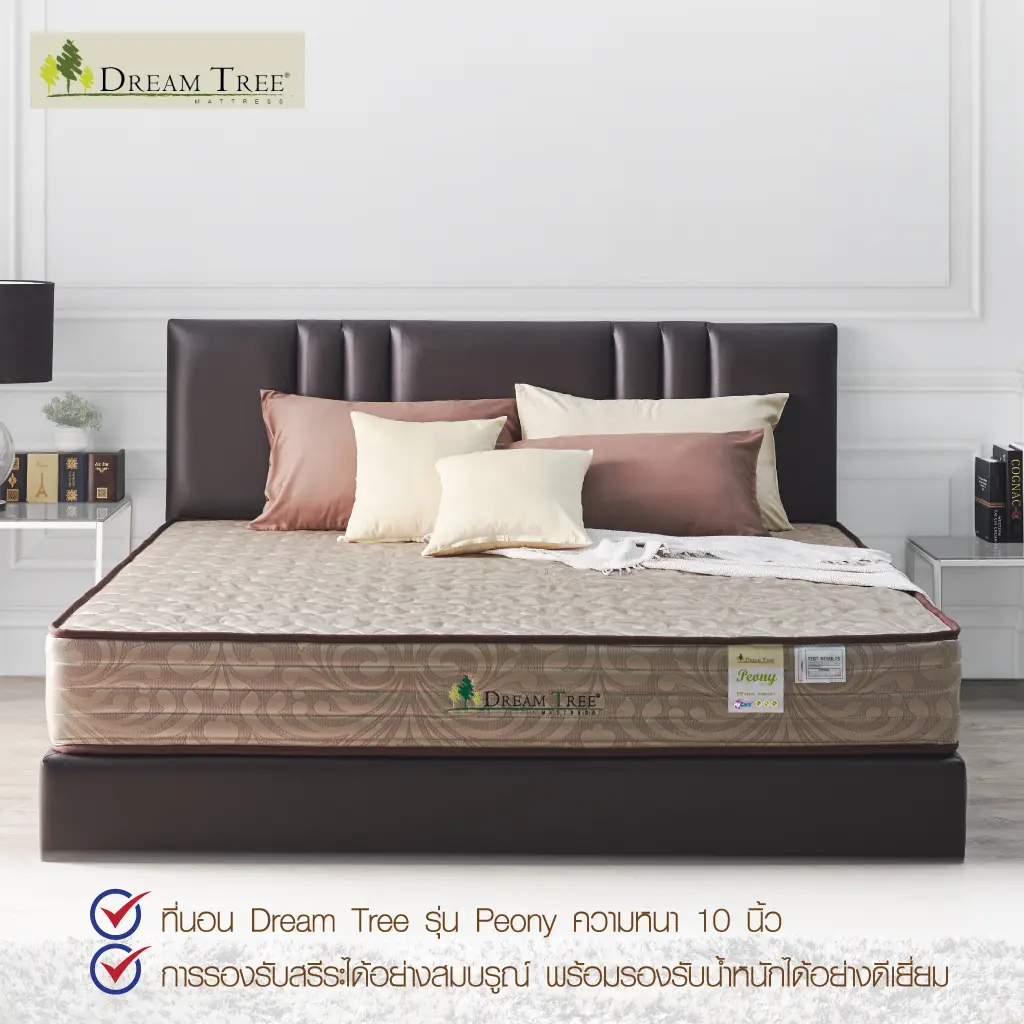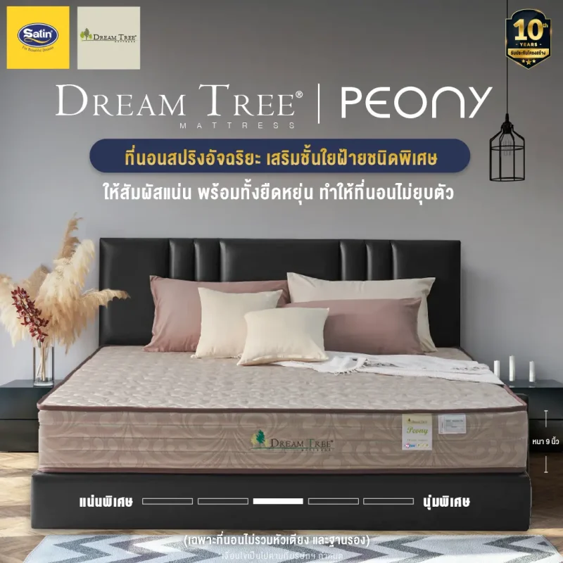 Satinที่นอน Dream Tree หนา 10 นิ้ว รุ่น Peony ป้องกันไรฝุ่น เชื้อรา และแบคทีเรีย [แถมฟรี! หมอนหนุน] (สินค้าเฉพาะที่นอน ไม่รวมฐานเตียงและหัวเตียง)