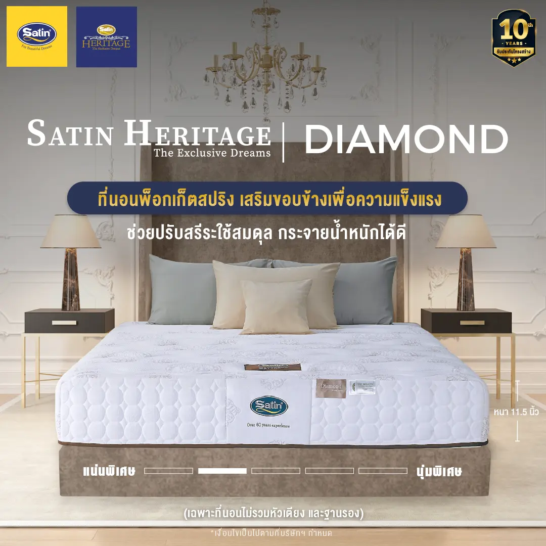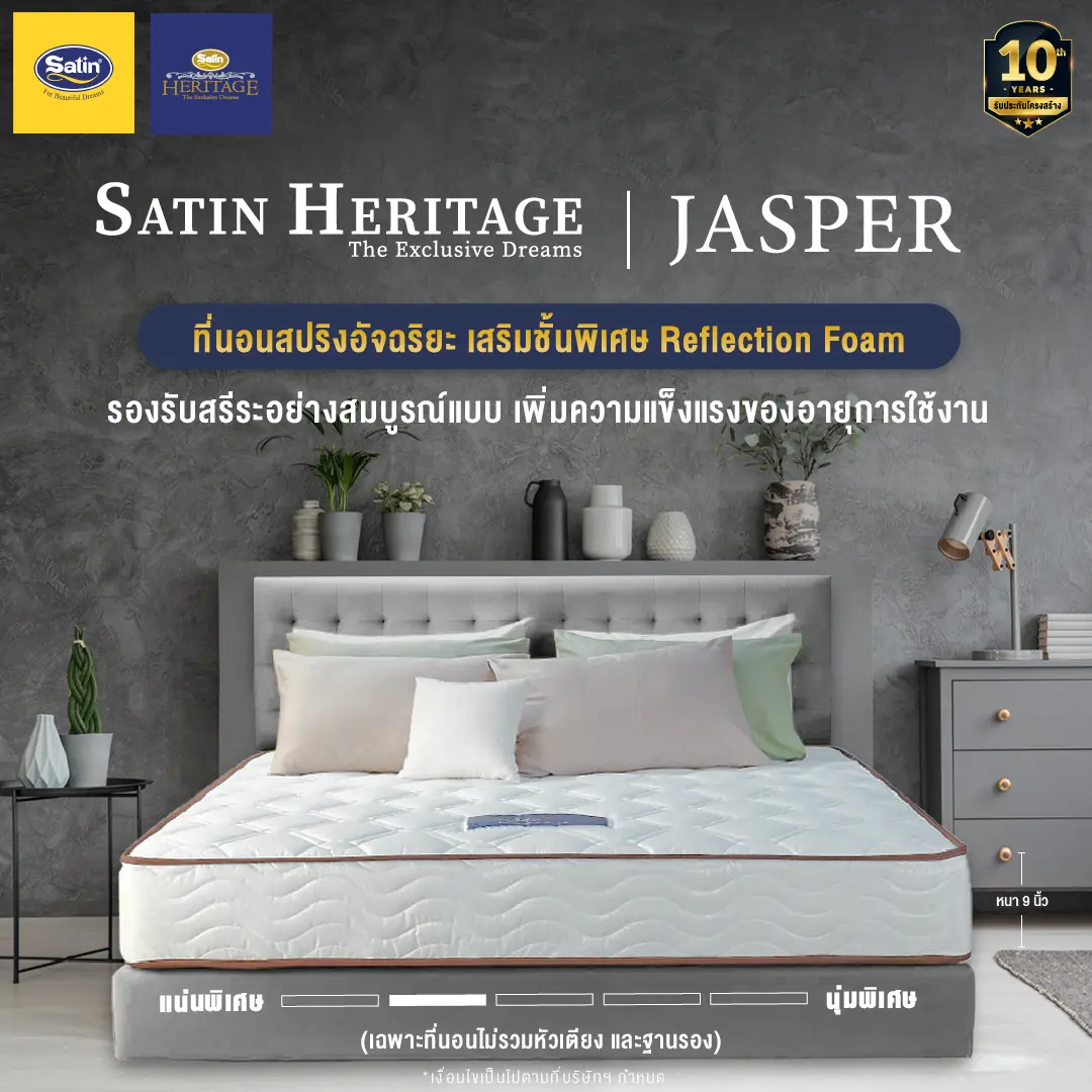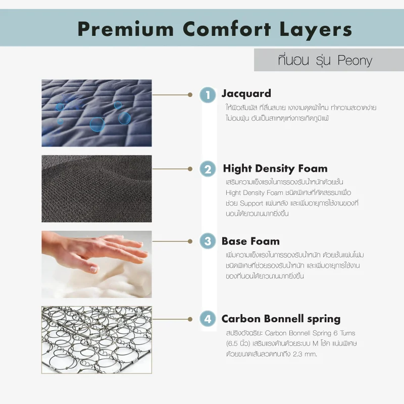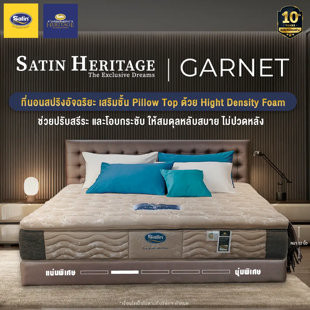 Satinที่นอน Dream Tree หนา 10 นิ้ว รุ่น Peony ป้องกันไรฝุ่น เชื้อรา และแบคทีเรีย [แถมฟรี! หมอนหนุน] (สินค้าเฉพาะที่นอน ไม่รวมฐานเตียงและหัวเตียง)