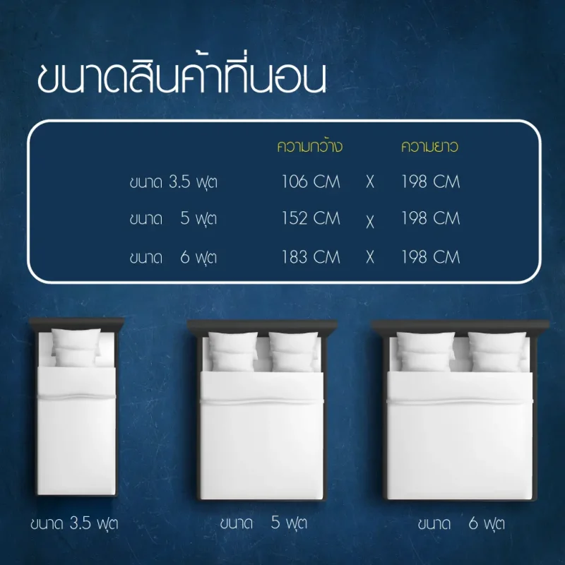 - ขนาด 5 ฟุต และ 6 ฟุต แถมฟรีหมอนหนุน 2 ใบ