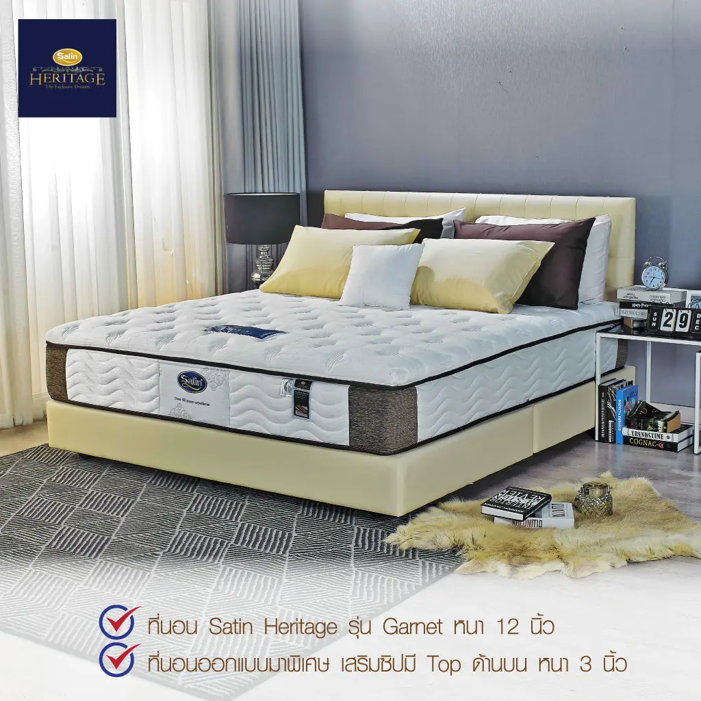 Satin Heritage ที่นอน รุ่น Garnet หนา 12 นิ้ว สีขาว-สีน้ำตาล แบบเสริมซิป มี Top ด้านบน หนา 3 นิ้ว